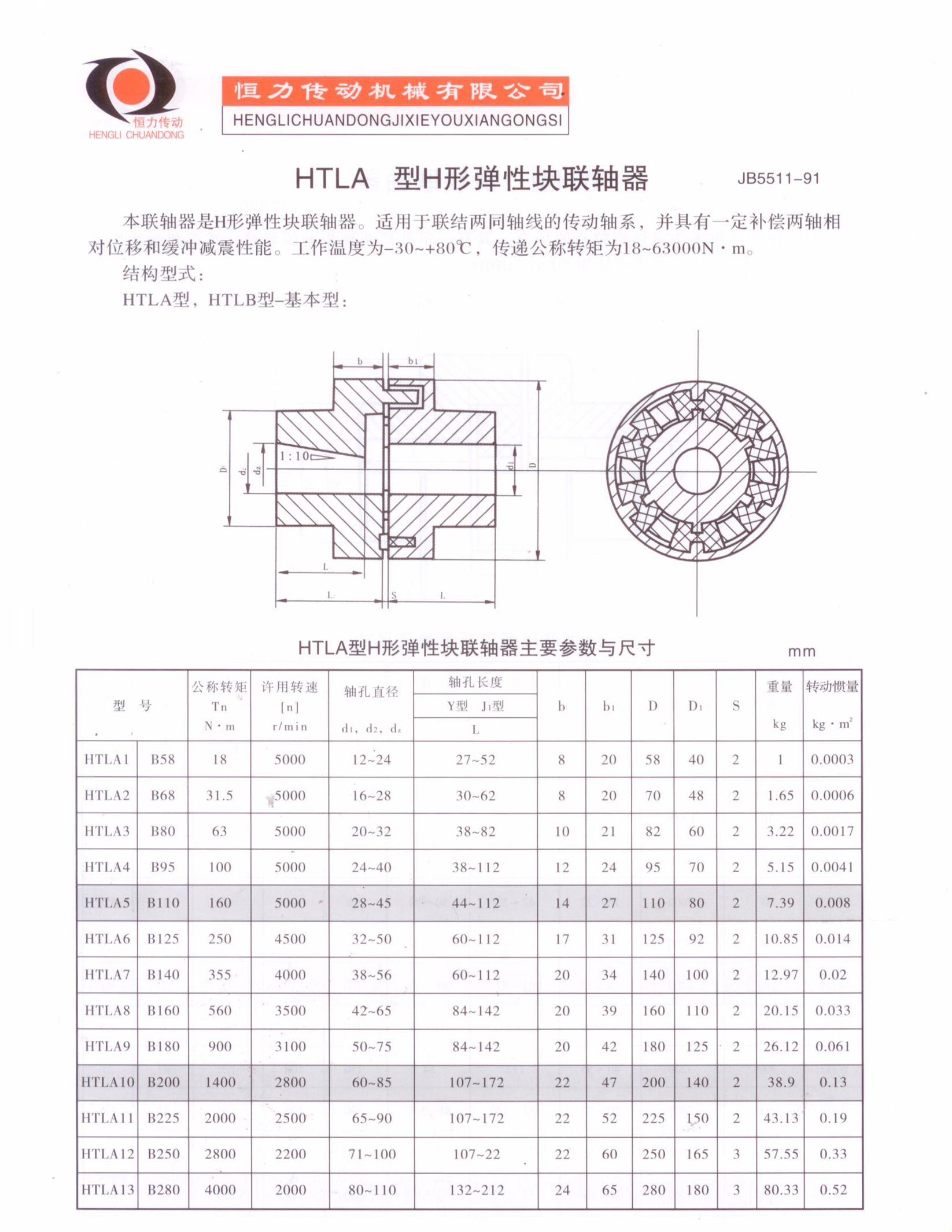 HTLA型H形彈性塊聯(lián)軸器